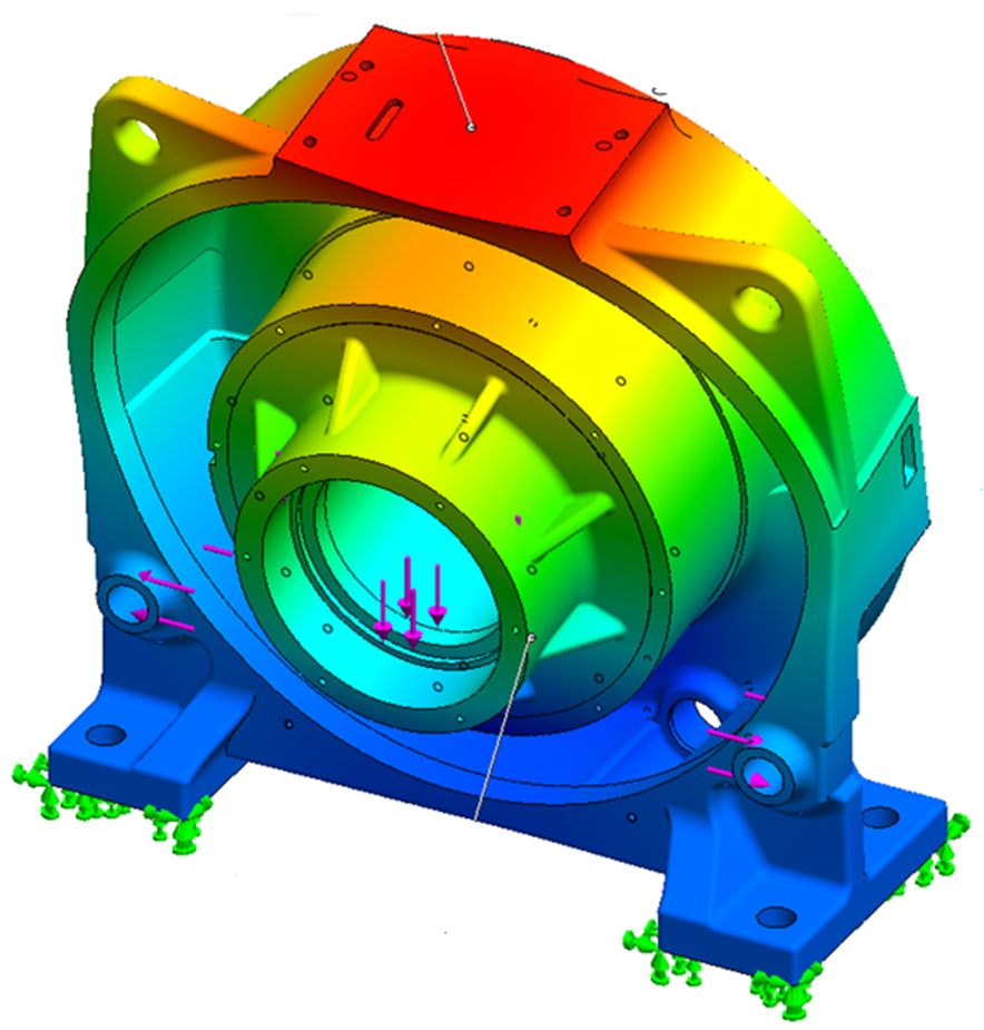 Alta segurança e confiabilidade são os requisitos e atributos básicos dos elevadores, e as pessoas têm requisitos ainda mais elevados para a segurança e confiabilidade dos elevadores do metrô. Portanto, realizamos uma análise detalhada da resistência mecânica (Figura 7) e apresentamos requisitos especiais e atualizações para capacidade de suporte de carga mecânica e desempenho de frenagem. Os fatores de segurança para suporte de carga dos principais componentes mecânicos, como a base da máquina, o cubo da roda, a roldana de tração e o eixo, foram aumentados em conformidade.