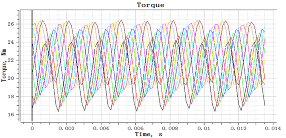 Para proporcionar uma experiência de pilotagem confortável, o design da máquina de tração também dá atenção especial à supressão de harmônicos, especialmente a supressão e redução de harmônicos de baixa ordem (que têm grande impacto no conforto) e sua amplitude de onda de força (Figura 8), bem como a redução da ondulação de torque em baixa velocidade (Figura 9) e do torque de engrenagem. Isso garante que o elevador funcione suavemente durante todo o processo, com baixo ruído e baixa vibração, proporcionando aos passageiros uma boa experiência de condução.