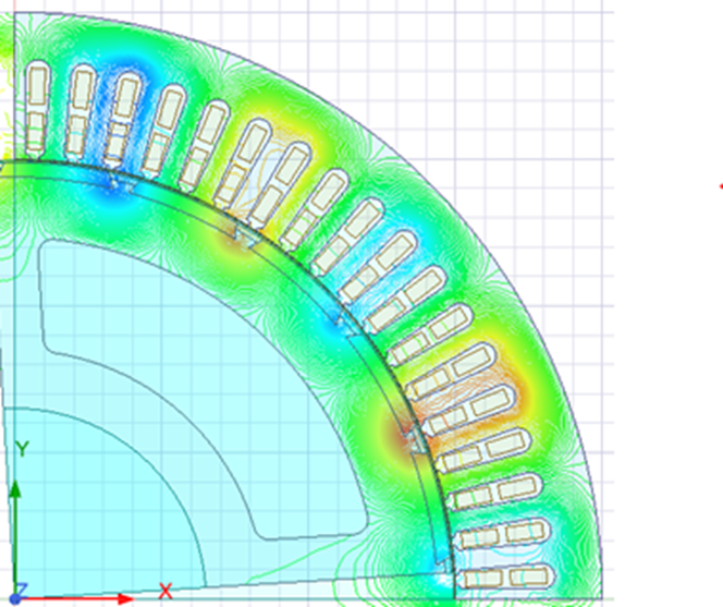 No contexto da defesa global de viagens ecológicas e de baixo carbono, a construção do transporte ferroviário apresentou requisitos mais elevados para a conservação de energia. Portanto, em comparação com outros elevadores, os elevadores metroviários necessitam que máquinas de tração tenham maior eficiência para atender cenários urbanos com grande fluxo de passageiros. Para elevadores com velocidade aproximada de 1 m/s, sua eficiência pode chegar até 90%. Além disso, de acordo com os requisitos de instalação do elevador, o peso e o tamanho da máquina de tração devem ser controlados. Portanto, os engenheiros de projeto de máquinas de tração precisam ter vasta experiência em projeto eletromagnético, otimizar o projeto eletromagnético com software avançado de análise de campo eletromagnético (Figura 5) e selecionar materiais eletromagnéticos apropriados para atender aos requisitos.