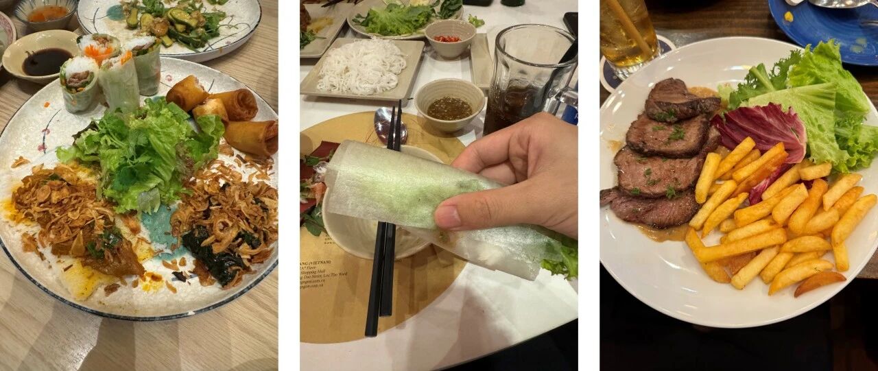 Além da exposição, tive a sorte de explorar os belos lugares do Vietnã, cada um repleto de um encanto único. A cidade de Ho Chi Minh é um paraíso para a culinária vietnamita, onde provei pratos vietnamitas autênticos, incluindo Phở (sopa de macarrão com carne), Bánh Mì (baguete vietnamita) e rolinhos primavera.