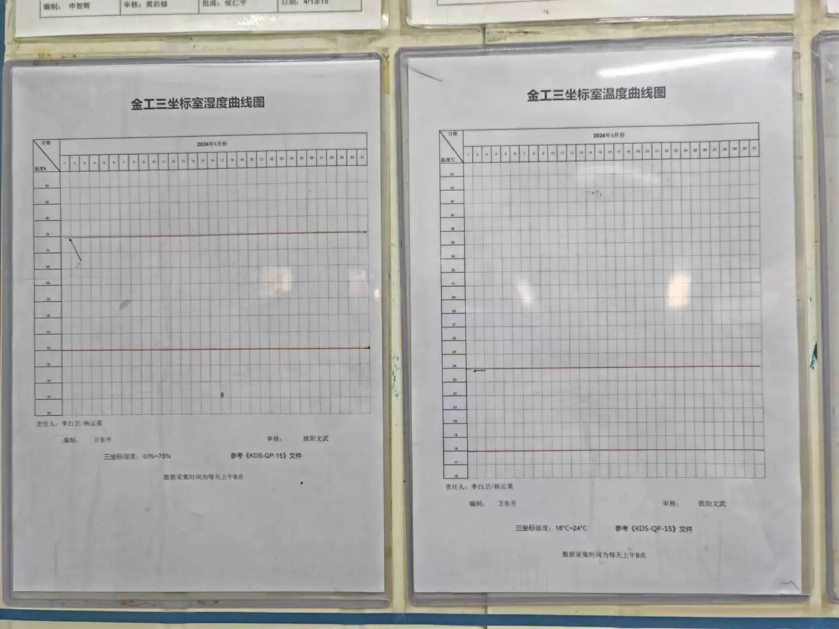 A KDS possui um total de 8.766 peças/conjuntos de ferramentas e equipamentos de teste de produção, todos incluídos no sistema de gerenciamento de registros metrológicos para gerenciamento unificado. O sistema de gerenciamento de metrologia supervisiona todo o processo de ferramentas e equipamentos de medição, desde o registro inicial no local, primeiro envio para inspeção, metrologia em vida, até avaliação e gerenciamento em vida. O livro de gestão metrológica permite a monitorização eficaz do estado de cada instrumento de medição, o alerta precoce e atempado de situações anormais, a prevenção de falhas de instrumentos e imprecisões de medição, proporcionando assim uma garantia fiável para garantir a precisão e fiabilidade das ferramentas e equipamentos de medição. A KDS alcançou zero erros no gerenciamento do registro metrológico de ferramentas e equipamentos de teste por 12 anos consecutivos.