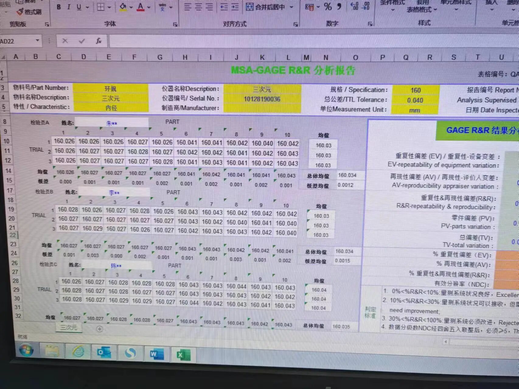 Primeiro, os operadores do equipamento realizam verificações detalhadas de desempenho ao iniciar o equipamento para garantir que o equipamento esteja sempre em estado normal. Ao mesmo tempo, para equipamentos de teste de alta precisão, a temperatura e a umidade do ambiente de teste são rigorosamente monitoradas de acordo com os requisitos do ambiente operacional do equipamento para garantir a precisão e confiabilidade dos dados de teste. A empresa atribui grande importância ao desenvolvimento de talentos e formulou um plano de treinamento contínuo abrangente e eficaz para garantir que os operadores de equipamentos possam dominar rapidamente as habilidades de operação de equipamentos. Em 2023, o Laboratório de Metrologia realizou 6 treinamentos especiais sobre uso e cuidados com equipamentos de teste, capacitando 35 operadores de equipamentos backbone da empresa. Para equipamentos importantes, foi formulado um plano detalhado de análise GAUGE R&R. Em 2023, a análise GAUGE R&R foi conduzida em vários equipamentos de teste importantes, e o desvio real foi significativamente menor do que os requisitos de desvio aceitáveis do equipamento.
