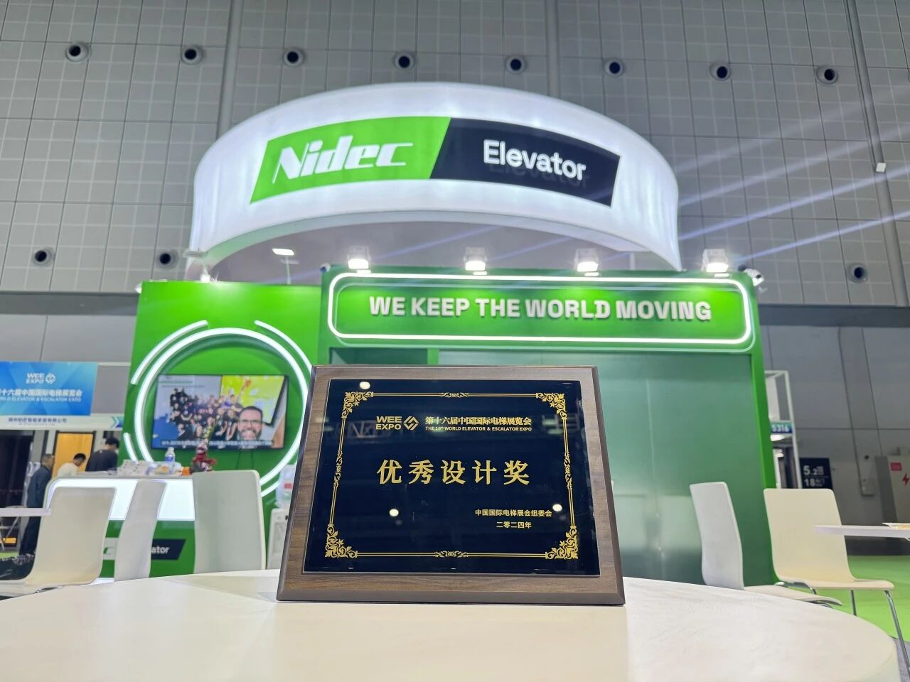 A 16ª World Elevator & Escalator Expo(WEE) foi concluída com sucesso no NECC (Xangai) de 8 a 11 de maio de 2024. Pela primeira vez, a KDS brilha neste WEE com NIDEC ELEVATOR Components. O novo logotipo do NIDEC ELEVATOR é muito atraente. O estande é de cores vivas, simples e único, mostrando a imagem internacional do Grupo NIDEC verde, atraindo muitos visitantes para tirar fotos. O estande da NIDEC também ganhou o “Excellent Design Award” concedido pelo comitê organizador da WEE.