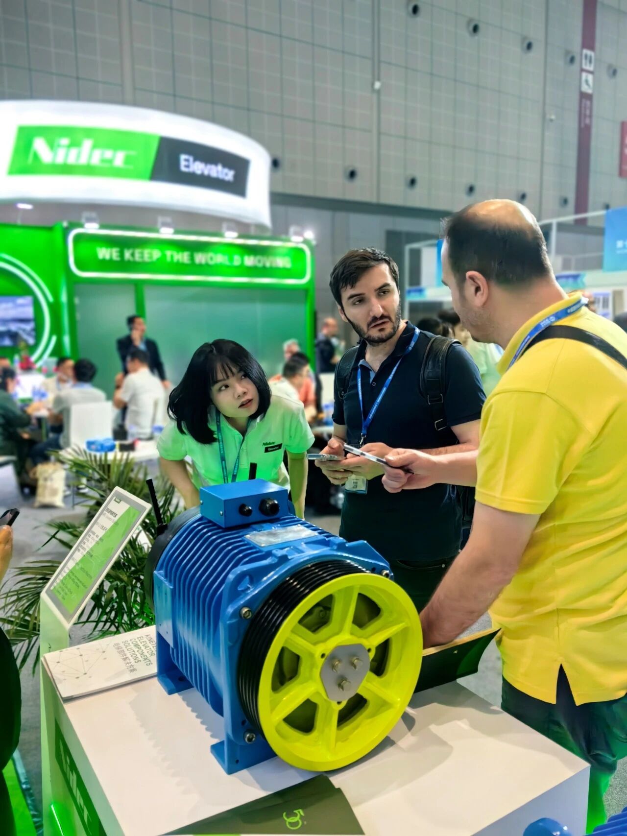 A Nidec é a maior empresa de motores e controle do mundo, com negócios de componentes para elevadores espalhados por todo o mundo. O estande da NIDEC foi construído em conjunto pela divisão de elevadores do grupo, com representantes de vendas de empresas irmãs nos Estados Unidos e na Colômbia. Durante a exposição, o estande estava lotado de visitantes da Austrália, México, Chile, Argentina, Panamá, Malásia, Índia, Bangladesh, Cingapura, Coreia do Sul, Japão, Vietnã e outros países. Graças à exposição, assinamos vários pedidos da máquina e do sistema de controle com clientes no local. Aqui estão os destaques do show.