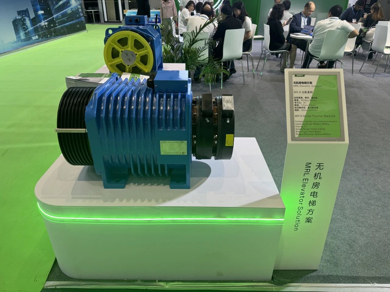 Além disso, este WEE também trouxe uma máquina tipo barril da série WR-D mais vendida no exterior. O design compacto comprime efetivamente a altura do produto e a estrutura esbelta atende às necessidades de projetos estritamente exigentes de nível superior. Para o WR-D, a capacidade máxima é de 1.600 kg e a velocidade mais alta do elevador é de 2,5 m/s com dimensão da polia de 400 mm.
