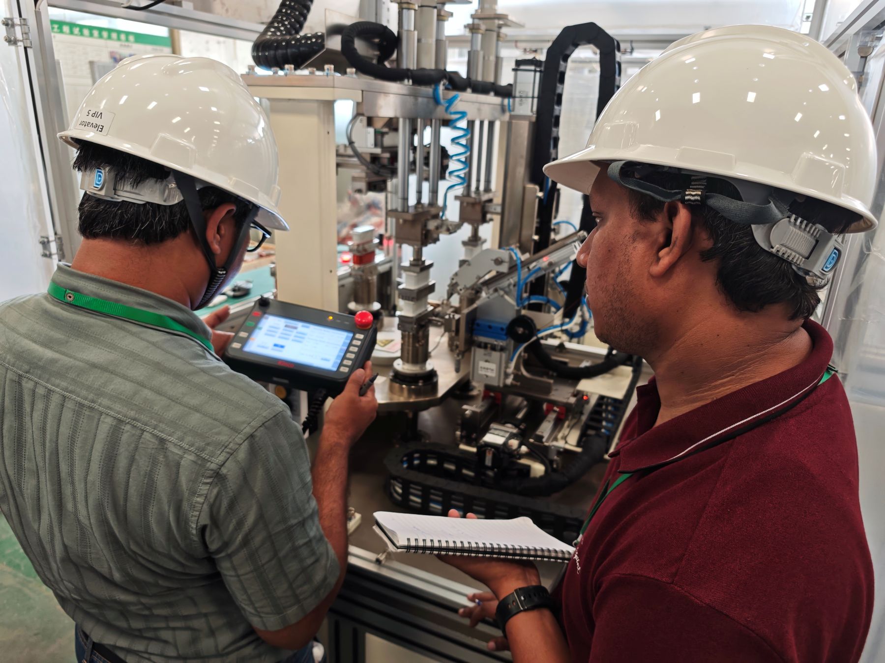 Na oficina de produção da nossa empresa, a equipe indiana observou de perto a linha de produção da máquina de tração. Do processamento dos componentes principais à montagem e depuração de toda a máquina, os pontos-chave do gerenciamento de qualidade em cada link geraram discussões acaloradas. Os engenheiros da nossa empresa se concentraram na introdução de tecnologia de processamento de alta precisão e medidas de garantia de qualidade no processo de montagem automatizado. Os colegas indianos acenaram frequentemente com a cabeça e partilharam a sua experiência prática em controlo de qualidade durante a produção localizada.